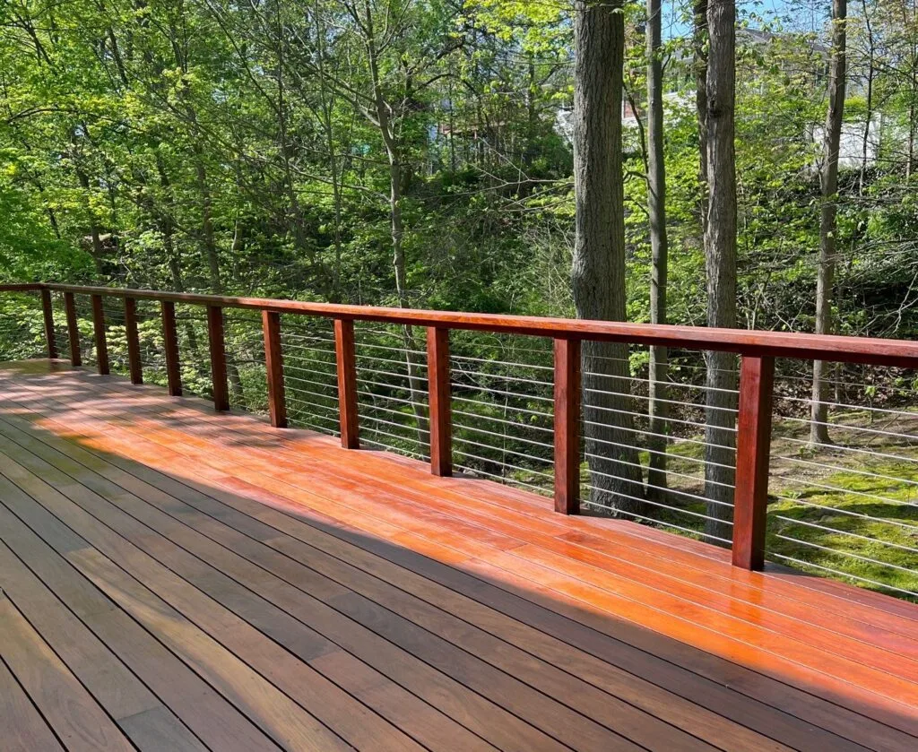 • Pressure-Treated Pine (common in Westchester): Holds up well to all stain types. Semi-transparent or solid stains are popular choices.